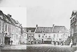 ↑Uiterst links is een wandplaat met "IJZERWAREN" en verderop een uithangbord van het hotel "Het Zwaantje" zichtbaar. Deze tekens zouden niet veel later met de veranderende functies van de respectievelijke panden verdwijnen.