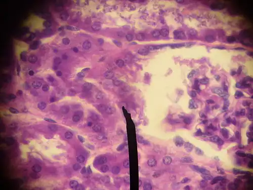 - Macula densa: cellen van de distale tubulus gericht naar de afferente arteriole, waar deze het vas afferens raakt; ze zien er 'dicht' (met donkere celkernen) uit als ze onder een elektronenmicroscoop worden bekeken. Deze cellen hebben een sensorfunctie wat betreft osmolaliteit en natriumgehalte van de distale tubulus.