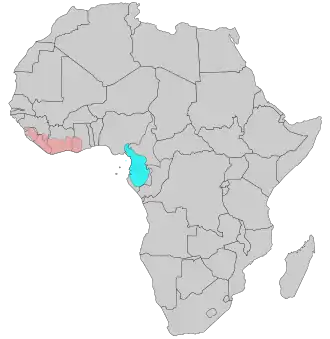 | Verspreidingsgebieden. Roze: witnekkaalkopkraai, blauw:grijsnekkaalkopkraai | ||||||||||||