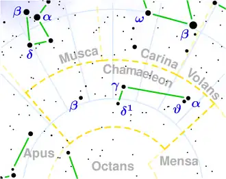 Het sterrenbeeld bevat geen heldere sterren, de helderste, alpha Chamaeleontis, heeft magnitude 4,07.
