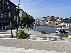 Het commerciële hart van de Blauwe Boulevard wordt gevormd door het winkelgebied Quartier Bleu, waar een divers aanbod aan winkels te vinden is, variërend van modeboetieks tot speciaalzaken en supermarkten. Langs de waterkant ligt een promenade bezaaid met cafés, restaurants en bars, waar bezoekers kunnen genieten van culinaire hoogstandjes met uitzicht op de jachthaven.