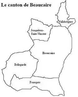 Het kanton Beaucaire omvatte tot 2014 de volgende 5 gemeenten: