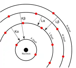 Karakteristieke röntgenstraling is energiekwantiteit waarvan de emissie karakteristiek is voor een bepaald element.[1] Het is een vorm van röntgenstraling (ontdekt door Charles Glover Barkla) die vrijkomt wanneer een deeltje (bijvoorbeeld een elektron of een proton) op zijn weg door een atoom in botsing komt met een elektron. Indien de energie van het binnenkomende deeltje hoger is dan de bindingsenergie van het elektron van het atoom zal dit atoom geïoniseerd worden. Deze toestand is onstabiel.