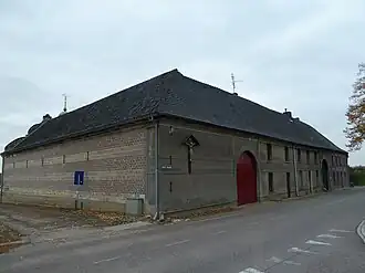 De rechthoekige kasteelhof is gedeeltelijk gebouwd in mergel. De twee grote rondboogpoorten aan het binnenplein hebben randen uit baksteen. Een van de bakstenen muren van de schuur is gelardeerd met mergelstenen speklagen. De hof heeft een grote voluutgevel met in de top twee uilengaten.