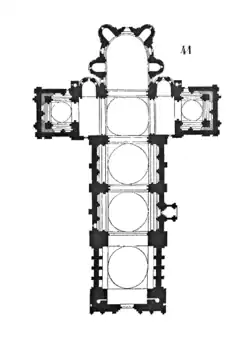 Het eenbeukige schip is overdekt met drie koepels. Het transept is verhoudingsgewijs lang, met lantaarntorens aan het noord- en zuideinde. Hiervan is alleen de noordelijke nog over, de andere werd door Abadie verwijderd. De toren heeft een hoogte van 59 meter, bestaat uit zes verdiepingen en is op de onderste verdieping na een complete reconstructie uit de 19e eeuw. Het koor is overdekt met een halve koepel en eindigt in een chevet met vier straalkapellen. De kruising is overdekt met een grotere koepel op een pendentief, deze verving de originele die was gesneuveld in de protestantse belegering van 1568.