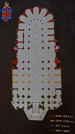 Deschamps werkte van 1248 tot 1287 aan het koor, waarin koning Lodewijk IX van Frankrijk zijn zoon Filips III van Frankrijk liet trouwen met Isabella van Aragon (1247-1271). De koning financierde een deel van de glas-in-loodramen die van dezelfde werkplaats schijnen te zijn als die van de Sainte-Chapelle. Het koor, transept en begin van het schip waren rond 1295 klaar.