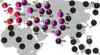 - ↑ http://www.roperld.com/YBiallelicHaplogroups.htm, https://web.archive.org/web/20081201075030/http://mbe.oupjournals.org/cgi/content/full/19/7/1008