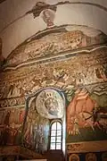 In het sanctuarium, ruimte binnenin voorbehouden aan de priester, is een Laatste Avondmaal afgebeeld met een originele compositie. In de pronaos zijn Heiligen van het Heilig Kruis te paard afgebeeld alsook het Leven van Sint-Jan de Doper en een Oecumenisch Concilie. Niet alle schilderingen in deze ruimte zijn van de hand van Dragoș Coman.