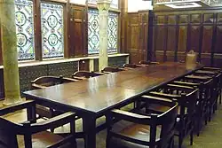De vergaderzaal is rijkelijk versierd en heeft nog de oorspronkelijke vergadertafel en stoelen. De gebrandschilderde ramen tonen de provinciewapens maar ook symbolen van leven en door. Ook de ombouw van radiatoren werden door Berlage ontworpen. Boven de betimmering is leren behang aangebracht. De zaal heeft een eigen toilet voor de bestuursleden.