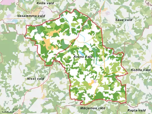 - ↑ (en) Cijfers van het Estisch bureau voor statistiek; tik onder het middelste vak ‘Kernu rural municipality’ in.