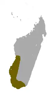 De soort is endemisch in het doornstruweel van Madagaskar, de zuidelijkste ecoregio van Madagaskar.[4] Zijn natuurlijke leefgebieden zijn regenwouden, savannes en grasland.