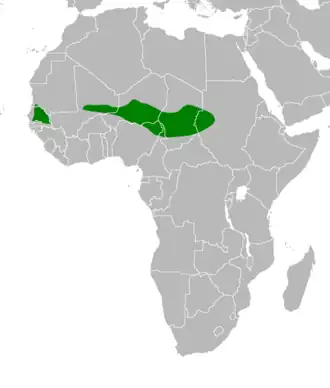 Deze soort komt voor in zuidelijk Mauritanië en noordelijk Senegal en van Mali tot westelijk Soedan.