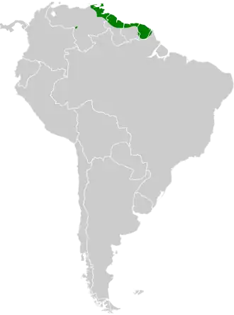 Deze soort komt voor in noordoostelijk Venezuela en de Guiana's.