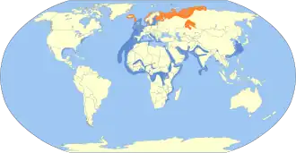■ niet-broedgebied (blauw)