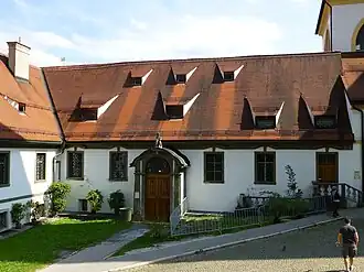 Op 11 december 1802, tijdens de secularisatie die volgde op de napoleontische oorlogen en de Vrede van Lunéville, werd het gebouw ingenomen door de prins van Oettingen-Wallerstein. Op 15 januari 1803 ontbond hij de abdij en vroeg hun uiterlijk per 1 maart van dat jaar te vertrekken. De inhoud van de bibliotheek ging naar nieuwe eigenaren met vlotten over de rivier de Lech. Het grootste gedeelte bevindt zich nu in de Universiteit Augsburg en een klein waardevol gedeelte in het bisschoppelijk archief van Augsburg. In 1837 werd het klooster gedoneerd aan de lokale parochie. In 1839 kocht kamerheer Christoph Friedrich Freiherr von Ponickau de resterende gebouwen. In 1909 verwierf de stad het klooster en een aantal gebouwen. De noordelijke vleugel werd gebruikt als het stadhuis en de zuidvleugel werd ingericht als historisch museum.