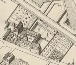 Het klooster op een stadsplan uit 1695.