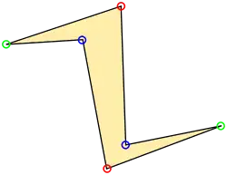 Een toepassing is de samengestelde lijn, die bestaat uit een aantal lijnstukken die op elkaar aansluiten. De uiteinden van de lijnstukken zijn de knooppunten. In de figuur zijn die met gekleurde cirkels aangegeven.