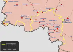 Op 15 augustus berichtte Oekraïne 1.150 km² Russisch territorium en 84 dorpen te bezetten,[3][4] en een eerste commandopost te hebben ingericht.[4] Ook werden de drie bruggen in de regio over de Sejm (bij Gloesjkovo,[5] Zvannoje[6] en Karyzj[7]) opgeblazen.