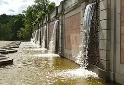 Detail van de gevel van het slot- Herculesfontein in de baroktuin