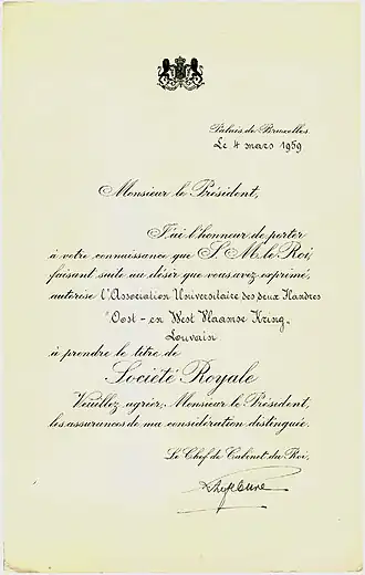 Niettemin hadden de oprichters, Daniel Ryelandt, Robert Ancot, Albert Van Den Heuvel et Fernand Kesteloot, hun Ere-Présidenten gevonden die ze nodig hadden: Mr. Van Den Heuvel, ex-minister van Justitie en Mr. Janssens de Bisthoven, gouverneur van West-Vlaanderen, om voor hen in te staan als peter, maar ook de vice-rector, Mr. Van der Essen, die hen de goedkeuring zou verlenen om een studentenclub op te richten. Zo werd de "Oost- en Westvlaamsche Kring", op 22 november 1922 geboren met als eerste Président, Robert Ancot.
