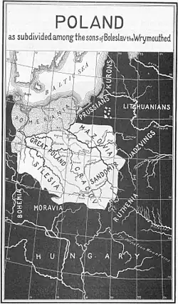 Bolesław III, die regeerde van 1102 tot 1138, probeerde een einde te maken aan de strijd om de opvolging. In zijn testament verdeelde hij het land in vijf hertogdommen die hij aan zijn zonen gaf.