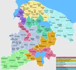 Ämter met deelnemende gemeenten (* = bestuurszetel)