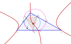 - punten waarvan de voetpuntsdriehoek en om-ceva-driehoek met een vermenigvuldiging op elkaar zijn af te beelden, of gelijkstandig zijn.