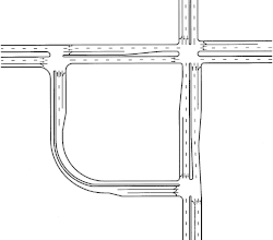 Als het kruispunt wordt vervangen door een ongelijkvloerse kruising, dan wordt het complex een kwadrantaansluiting genoemd. Deze aansluitingen komen ook in Nederland voor. Voorbeelden zijn de kruising tussen de N201 en N205 bij Hoofddorp[1] en aansluiting Helmond-Noord op de N279.[2]
