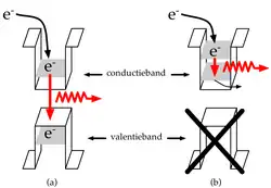 In de gebruikelijke halfgeleiderkristallen kunnen elektronen voorkomen in een of twee continue energiebanden: de valentieband, die een hoge concentratie bevat aan energiearme elektronen, en de conductieband, die een lage concentratie aan energierijke elektronen bevat. Deze twee energiebanden zijn gescheiden door een bandkloof, die een verboden gebied vormt voor de elektronen. Aangezien geëxciteerde elektronen enkel 'vallen' van de conductieband naar de valentieband, hangt de golflengte van de uitgezonden golf sterk af van de grootte van de bandkloof van het gebruikte materiaal. Dit is een restrictie die de kwantumcascadelaser niet kent, gezien de val gebeurt over een subband (zie figuur), terwijl het grote voordeel van intersubbandtransitie is dat ook indirecte halfgeleiders, zoals het goedkope silicium, gebruikt kunnen worden.