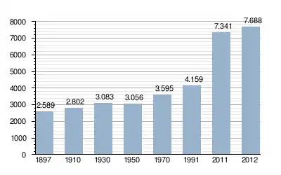 - Bron: INE, 1897-2011: volkstellingen