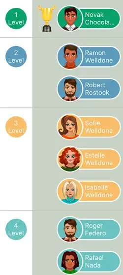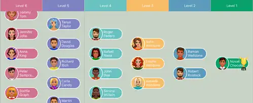 Een speler mag alleen andere spelers uitdagen die boven hem staan, maar maximaal één niveau hoger. Op niveau 1, het hoogste niveau, staat één speler. Daaronder, op niveau 2 staan twee spelers, op niveau 3 staan drie spelers en zo verder. Op de plaatjes hieronder heeft ieder niveau een andere kleur.