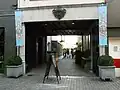 Halverwege is de binnenplaats 't Sas met enkele winkels en een terras.