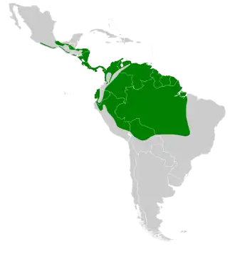 Deze soort komt voor van zuidelijk Mexico tot oostelijk Bolivia en noordoostelijk Brazilië en telt drie ondersoorten:[2]