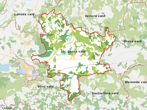 De landgemeente Lasva telde 37 dorpen. De hoofdplaats was Lasva. In oktober 2017 werd Lasva bij de gemeente Võru vald gevoegd.