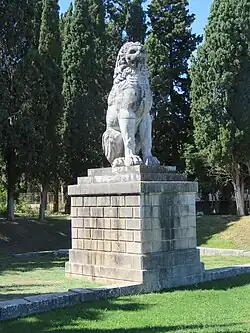 In zijn 2e-eeuwse Beschrijving van Griekenland (9:40) betreurde Pausanias hoe de Macedoniërs bij Chaironeia een einde hadden gemaakt aan het tijdperk van de Griekse steden. Hij vermeldde dat de Thebaanse doden waren begraven in een massagraf (Πολυάνδριον / polyandrion) en dat een leeuw was opgericht om hen te gedenken. De Macedoniërs gaven hun doden een tumulus in de vlakte van de rivier de Kefissos na een massacrematie.