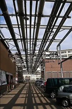Olieraffinaderijen en petrochemische complexen worden gewoonlijk gedomineerd door leidingstraten, aangezien daar tal van grond- en hulpstoffen moeten worden getransporteerd.