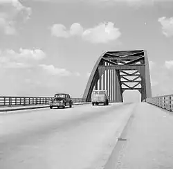 - Begin jaren '60 ontstonden bij de smalle boogbrug steeds vaker files. In 1967 werden daarom buiten de bogen rijstroken voor langzaamverkeer aangebracht zodat binnen de bogen het snelverkeer kon uitbreiden naar 2x2 rijstroken.