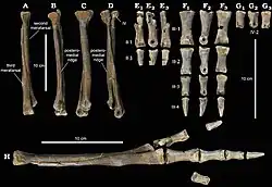 Het holotype van Leptorhynchos elegans is ROM 781, een linkermiddenvoet gevonden bij Little Sandhill Creek in een laag van de Dinosaur Park Formation die dateert uit het late Campanien, waaraan de schacht van het derde middenvoetsbeen ontbreekt. Het geheel moet een kleine twintig centimeter lang geweest zijn.