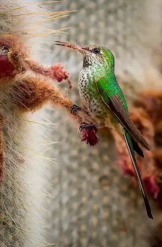 - ↑ (en) McGuire, J. et al 2014. Molecular phylogenetics and the diversification of hummingbirds. Current Biology. 24 (8): 910–916. DOI:10.1016/j.cub.2014.03.016
