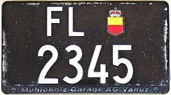 Het Liechtensteins kenteken bestaat uit twee letters en vier tot vijf cijfers. De witte letter- en cijfercombinatie staat op een zwarte achtergrond. Tussen de letters en cijfers staat het wapenschild van Liechtenstein. Door de beperkte oppervlakte van het land en het gering aantal inwoners zijn de twee letters die de cijfers voorafgaan altijd FL (Fürstentum Liechtenstein) en zijn er in Liechtenstein ook geen regionale codes. Naar vormgeving komen letters en cijfers overeen met dat van het Zwitsers kenteken.