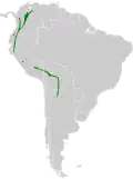 Deze soort komt voor van Venezuela tot zuidelijk Bolivia en telt drie ondersoorten:[2]