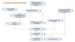 Lieven de Key is ontstaan uit fusies van een zestal woningcorporaties. De oudste woningcorporatie daarvan, de Bouwmaatschappij tot Verkrijging van Eigen Woningen, is in 1868 opgericht. Deze Bouwmaatschappij functioneert zelfstandig en maakt geen aanspraak op de staatssteun die andere woningcorporaties op basis van de Woningwet vanaf 1901 wel ontvangen. Om toch toegang te krijgen tot die staatssteun wordt in 1919, naast de Bouwmaatschappij, de stichting Onze Woning opgericht. Onze Woning komt als ‘toegelaten instelling’ wel in aanmerking voor staatssteun. Het bestuur van Onze Woning bestaat uit dezelfde personen als dat van de Bouwmaatschappij. Zo kan er zowel met én zonder staatssteun worden gebouwd.