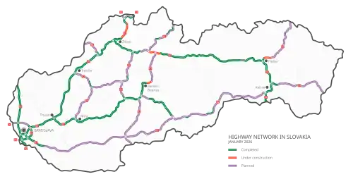 Lijst van Slowaakse autosnelwegen en autowegen