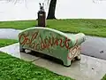 Parkstadbank en Historische bank bij de ingang vanaf de parkeerplaats achter het stadion. | ||