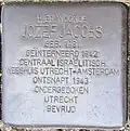 HIER WOONDE JOZEF JACOBS GEB. 1931 GEÏNTERNEERD 1942 CENTRAAL ISRAËLITISCH WEESHUIS UTRECHT-AMSTERDAM ONTSNAPT 1943 ONDERGEDOKEN UTRECHT BEVRIJD |