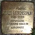 HIER WOONDE MEIER LEBENSBAUM GEB. 1886 DEPORTATIE VERMOORD 1942 IN AUSCHWITZ |
