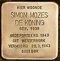 HIER WOONDE SIMON MOZES DE KONING GEB. 1938 GEDEPORTEERD 1943 UIT WESTERBORK VERMOORD 20.3.1943 SOBIBOR |