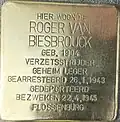 Hier woonde Roger Van Biesbrouck geb. 1904 verzetsstrijder Geheim Leger Gearresteerd 26.1.1943 Gedeporteerd bezweken 22.4.1945 Flossenbürg |