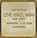 HIER WOONDE LEVIE ISRAEL KATAN GEB. 1930 VERMOORD 5.11.1942 AUSCHWITZ |