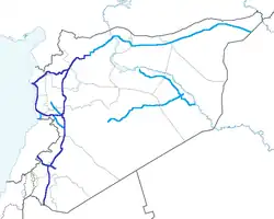 - M5 (deel van M45 (Mashreq)): weg van 467 kilometer van de grens met Jordanië via Damascus, Homs en Hama naar Aleppo [1][2][3]